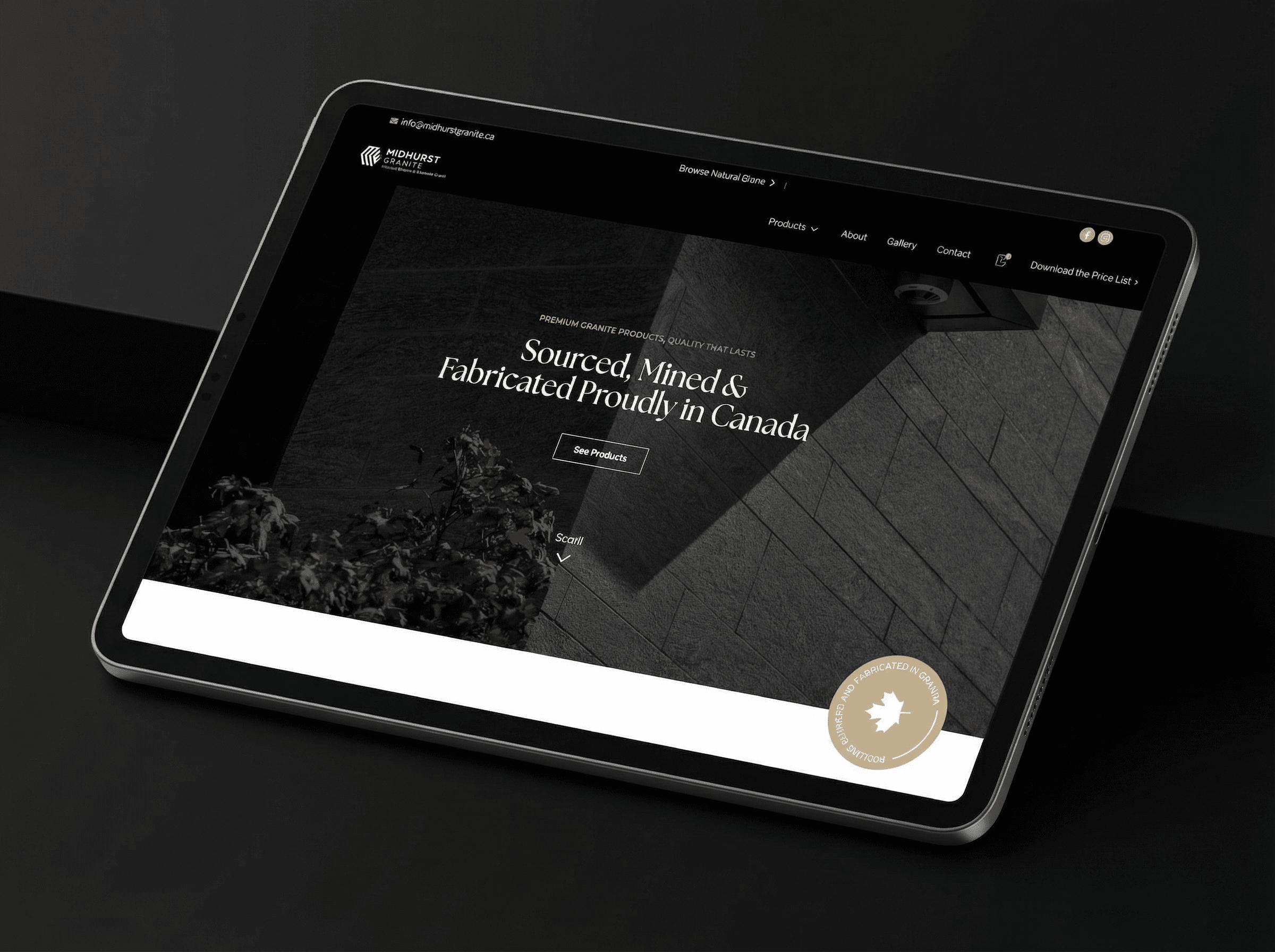 Midhurst Granite, a locally owned business specializing in high-quality Canadian granite products, partnered with SocialSquared for a comprehensive growth system including a landing page with catalog download, marketing collateral design, professional photography and videography with aerial, and a targeted paid advertising campaign that generated a surge of qualified leads.
